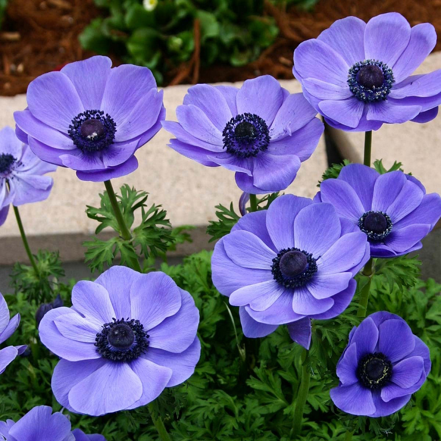 Луковицы анемоны простой мистер Фоккер (Mr. Fokker) – сорт изящных растений с шелковыми фиолетовыми лепестками полумахровых цветов. Нежные широкие лепестки раскрываются в широкие чаши с синей сердцевиной и черными тычинками. Листва насыщенного зеленого цвета создает эффектный контрастный фон для цветов.