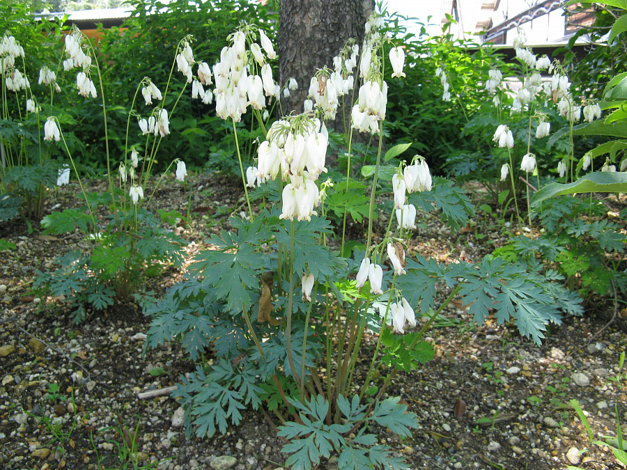Рассада дицентры "Аврора" (Aurora) - многолетнее травянистое растение с массивным корневищем. Красивые стебли 20-30 см в высоту появляются весной и несут нежные, перисто-рассеченные, сероватого цвета листья. Цветение – май-июнь. Цветки поникающие, окрашены в белый цвет. Предпочитает расти на рыхлых, влажных почвах, преимущественно теневыносливое растение. Нуждается в постоянных поливах и подкормках. Рассада дицентры "Аврора" устойчива к садовым болезням, морозостойкая и очень долговечная.
