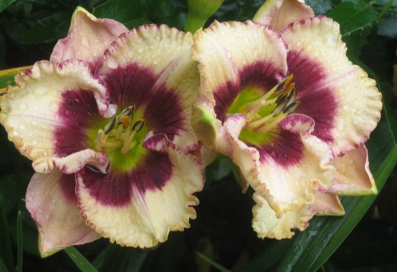 • Окраска цветка : кремовая с лиловым центром и каймой