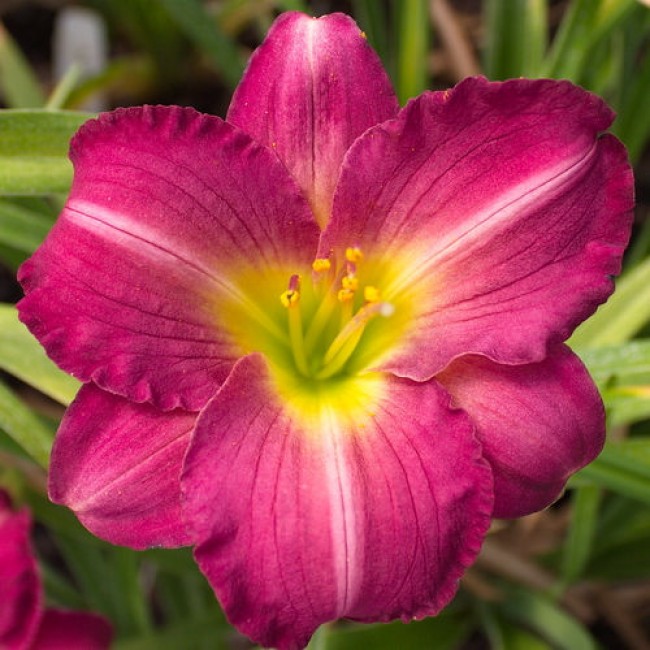 • цветки диаметром до 12 см. Семена, собранные после цветения, могут использоваться для проращивания рассады. Лилейник Силоам Роял Принц цветет темно-пурпурными бутонами с небольшим зеленым горлом. Лепестки по краям гофрированные, а посередине каждого проходит белая линия. Корни в открытом грунте неплохо переносят зиму, а благодаря особому строению довольно долго могут обходиться без полива.