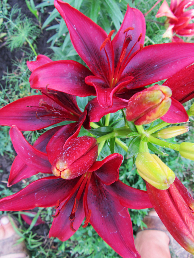 • Окраска цветка : направленные вверх цветки — глянцевые, темно-красные, с черным отблеском в центре