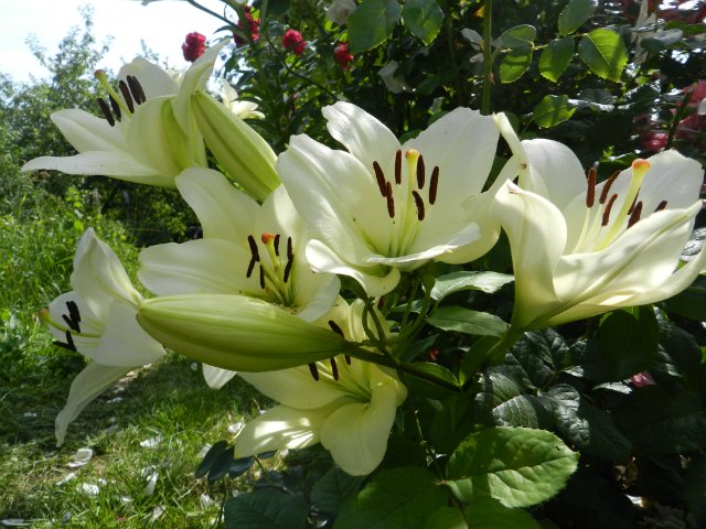 Саженцы и рассада лилии ла-гибрид Курьер (Lilium) будут эффектно выглядеть во время цветения в ландшафтных композициях. Цветки диаметром 20 см раскрываются в июле-августе, источают тонкий приятный аромат и великолепно смотрятся на фоне яркой летней зелени. Бело-кремовые нежные лепестки становятся желтовато-зелеными ближе к центру. На светлом фоне красиво выделяются темно-коричневые пыльники тычинок.