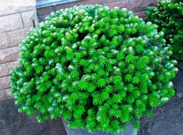 Саженцы пихты корейской Бриллиант (Brillant): пушистые карликовые кустарники прямо искрящиеся яркими зелеными хвоинками. Густота кроны придает крупномерам мягкую округлую форму. Хвоя короткая, снизу имеет серебристые полоски. Максимальная высота кустов не превышает 0,6 м. Пихта корейская Бриллиант подходит для выращивания в контейнерах и подходит для формирования бонсаи. Достоинства: